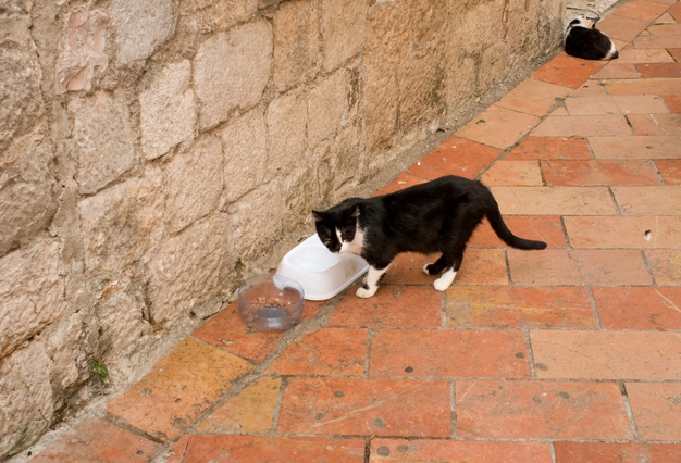 На улицах города очень много кошек, поэтому повсюду расставлены миски с кошачьей едой и питьем.