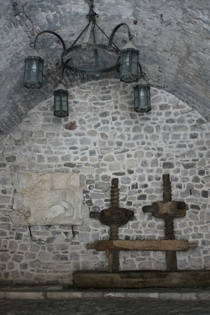 Внутри городских ворот стоит старый пресс для отжима оливкового масла. И опять мы видим крылатого льва как знак веницианского владычества.