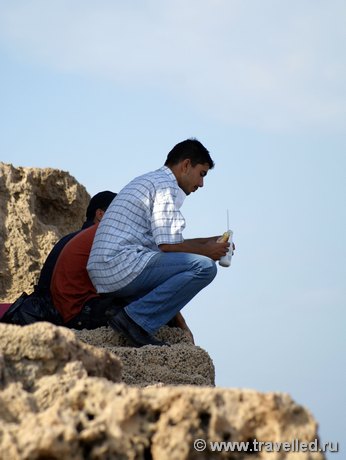 Кстати, о еде. Мы расположились на обломках стены, возле моря. Перекусили булочками, купленными в Хомсе и напитком, которым нас пытались напоить в кафе.