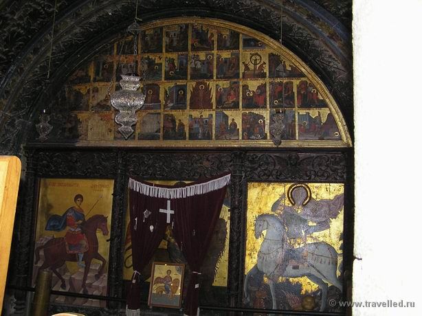 Церковь открыта для посещений в дневное время. Мы как раз успели посмотреть ее до закрытия на обед. Внутри она очень красива - огромный купол, уходящий в небо, древняя кладка арочных проемов, колонны с резными капителями, множество древних икон, книги на греческом, церковная утварь.