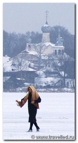 Стоим на льду. Неспешно фотографируем кремль, озеро, монастырь, остров.