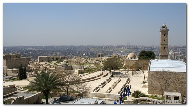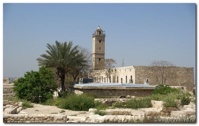 Если снаружи Цитадель выглядит целехонькой, то здания внутри еще продолжают реставрировать. Одновременно идут археологические раскопки. Справа от центральной улицы сохранились подземные помещения византийского времени. В тюрьме, устроенной в одном из «залов», сидел захваченный в 1160 г. в плен принц Рене де Шатильонский. Слева видна скромная мечеть Ибрагима (пророка Авраама), построенная Hyp ад-Дином в 1167 г. на том самом месте, где древнееврейский пророк доил свою корову. При строительстве использовались фрагменты византийских колонн. С минаретов Большой мечети (1214), возвышающихся на высоту 21 м, открывается прекрасный вид на город.