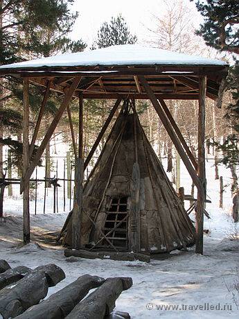 Воскресенье я посвятила походу в этнографический музей малых народов Забайкалья. Погода выдалась, можно сказать, на славу: единственный солнечный день за все время в Улан-Удэ, температура около минус пяти, и даже ветер донимал не слишком. В музее представлены типичные жилища различных народностей, проживающих в данном регионе; самым интересным мне показался эвенкийский стан. Приводить экскурс в детали эвенкийского быта не буду, обращу внимание лишь на то, что малоизвестно. Все вещи шамана (обычно самого зажиточного во всем стане) считаются заряженными негативной энергетикой, поэтому даже в музее представлены искусственно изготовленные макеты, а не настоящие предметы ритуальных культов. Ни в коем случае не дарите нико-му бубен шамана! (некоторые фанаты, узнав, что я с Алтая, запрашивали у меня нечто подобное в качестве сувенира). Понравилось и представленное в самом начале (на входе) "наивное искусство народов Севера": оленный камень с изображениями трех оленей, мо-дели дольменов (захоронений) и просто каменные изваяния. Был представлен и лабиринт из плоских камней высотой не более 10-15 см, похожий на те, что я видела на Соловках; назначение таких лабиринтов неизвестно, но обнаруживают их в самых разных местах.