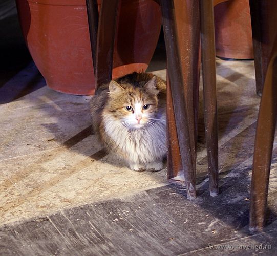 Для кошек мне ничего не жалко. Я пытался подманить ее всеми сортами мяса, которые были у меня в тарелке. Вотще. Кошка была равнодушна. Да уж, это не наглые тощие кошки Мальты...