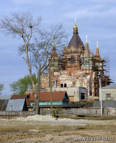 Поворачиваю обратно. Иду к большой, окруженной зеленью, тоже реставрируемой церкви красного кирпича с черными и обитыми медью куполами. Внешне она чем-то напоминает Собор Александра Невского в Нижнем Новгороде. Плутаю по улочкам, наконец выхожу на улицу Ленина. Ага, вот она. Рядом с военкоматом. Странно, на плане города этот храм не обозначен.