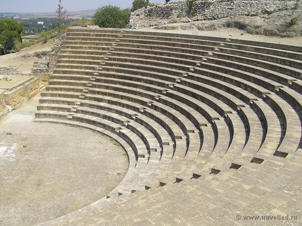 За базиликой, поднимаясь на холм, попадаешь в театр Сол, датированный римским временем. Он был построен на месте древнегреческого театра на склонах холма, выходящих на море. Строительство театра относится к концу II - началу III в.н.э. Полукруглые ряды сидений для зрителей были расположены на скальной поверхности холма. Место для оркестра находится посередине и отделено от зрительного зала низкой стеной, выложенной блоками известнякового кирпича. В зону оркестра и к рядам сидений, расположенных напротив помещения сцены можно пройти по двум боковым проходам.